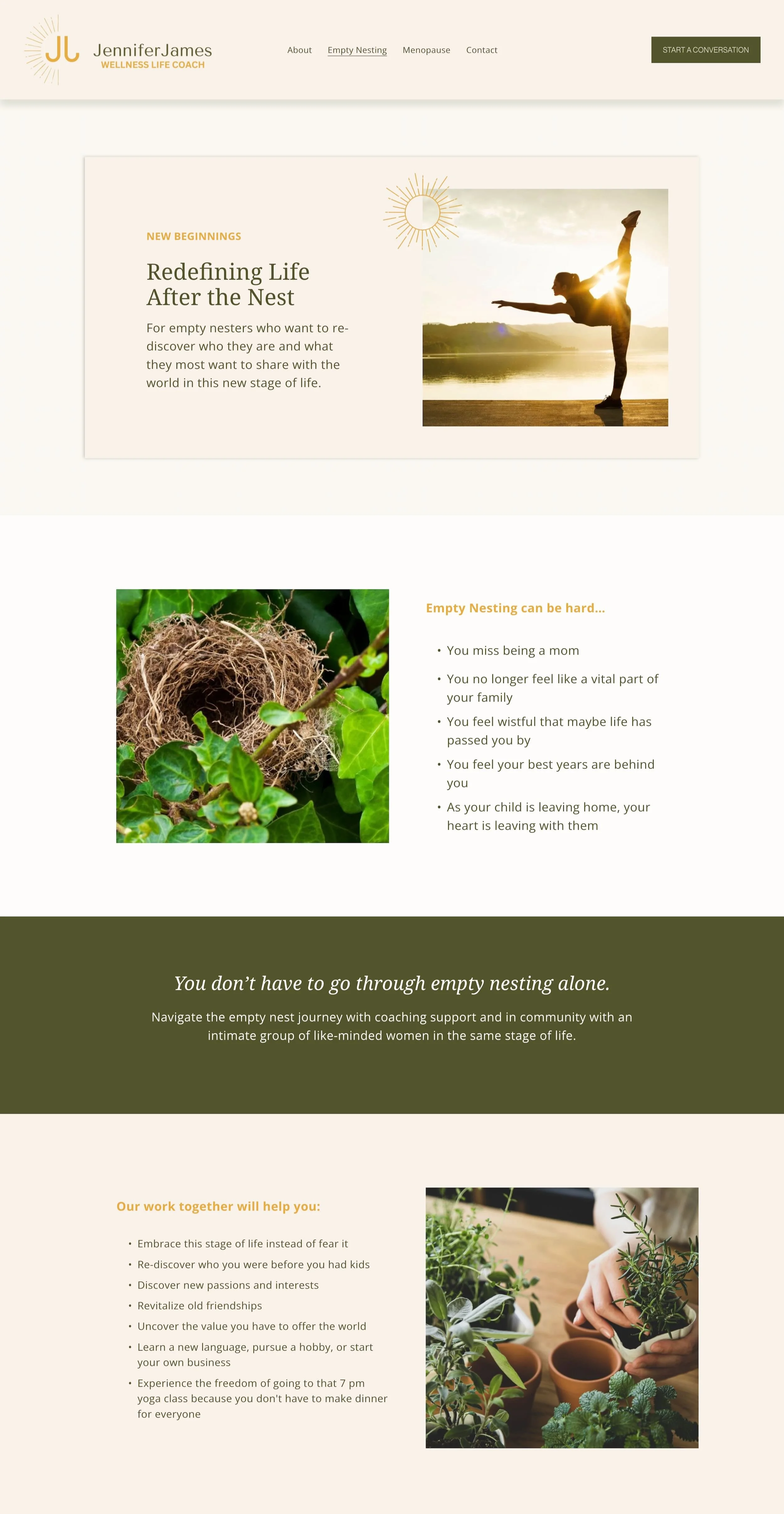 Jennifer James is a Life & Wellness Coach for empty nesting moms and women in menopause who want to re-discover who they are and what they most want to share with the world in this new stage of life.