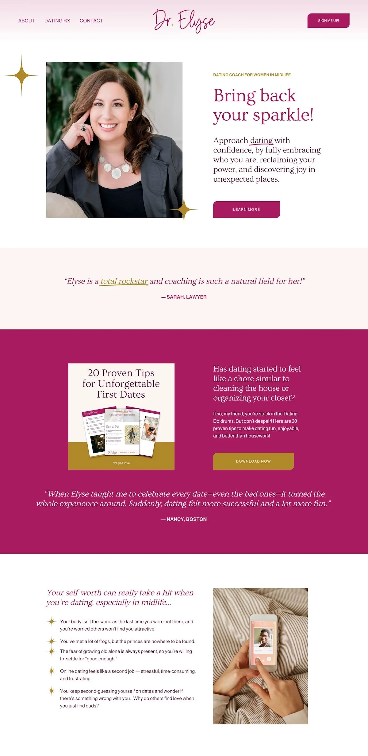 I designed the lead magnet “20 Proven Tips for Unforgettable First Dates” for Dr.Elyse, which we featured on her site!
